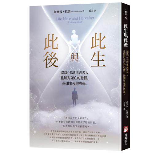 一定能獲致瑜伽最高的成果。本書是由斯瓦米.拉瑪巡迴世界各地講課的內容匯集而成,保留了演講的精華,並以經過爬梳整理和緊湊編排的方式表現出來。這些演講是針對《奧義書》,其中一部是《卡塔奧義書》,描述一個大多數人所害怕面對的千古之謎:死亡之祕,該書由死神閻摩和探究死亡奧祕的少年納奇克塔之間的對談構成。而本書所肩負的挑戰任務,正是化解死亡以及對死亡之恐懼。