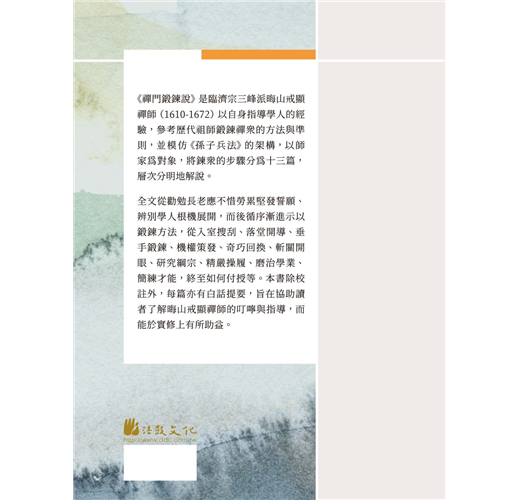 關鍵在於師家是否明綱宗、懂鍛鍊《禪門鍛鍊說》是臨濟宗三峰派晦山戒顯禪師(1610-1672)以自身指導學人的經驗,參考歷代祖師鍛鍊禪眾的方法與準則,並模仿《孫子兵法》的架構,以師家為對象,將鍊眾的步驟分為十三篇,層次分明地解說。