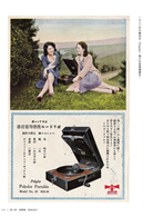 「謹啟者,本社不惜巨資於本年五月中特派技術員到本島招聘特色藝妓及有名曲師,撮唱最新流行歌曲,品質堅牢、聲音明亮之十吋大曲盤,與他品大相懸殊,玆將藝術者及曲名列於別行,又本社發賣鷹標蓄音器,係應用最新技術,為國內第一良品,誠蒙惠顧,當以確實價格以應雅命。」