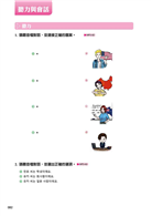 系統性的詞彙分類,搭配練習活動與「說說看」,學習生活上可以應用到的短句。透過「字彙練習」可以更理解對話以及敘述的內容,能夠更有效率得記住詞彙。