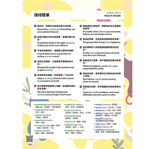 無論你是為升學考試而努力,或只是想為未來累積實力,這本書都會穩穩地陪著你,走完這段單字學習的長路——走得慢也沒關係,只要每天都在前進。