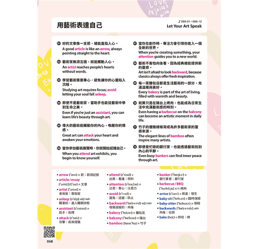 開啟 Youtor App 掃描頁面 QR Code,即可聆聽英文句子標準朗讀(美式發音),同步練習聽力與口語節奏。
