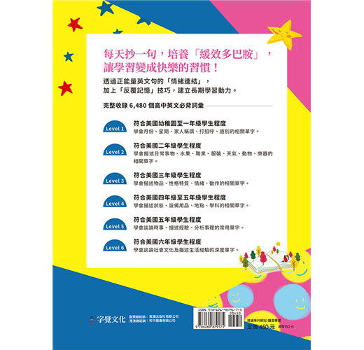 依照大學入學考試中心公布的《高中英文參考詞彙表》,完整收錄6,480字,分為Level 1–6,依字母順序編排。