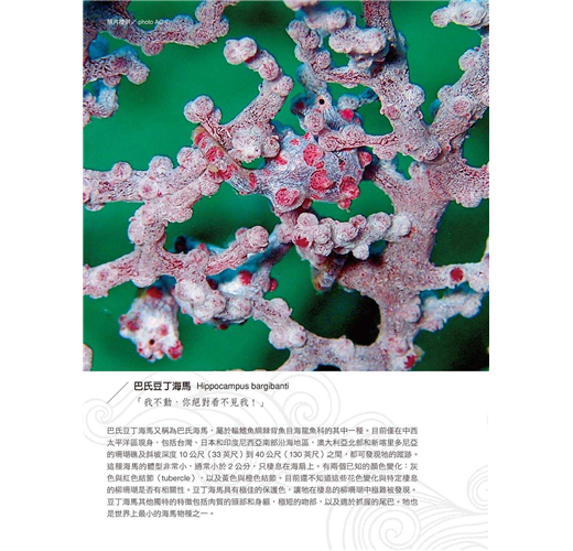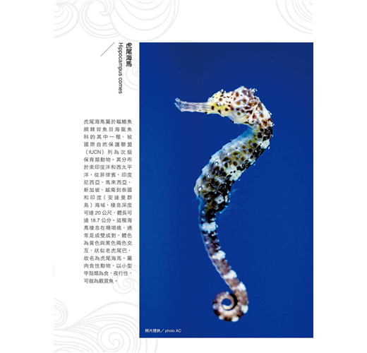 英國海洋生物學家海倫‧斯凱爾斯(Helen Scales)第一次看見海馬時是在越南潛水,一個像被施了魔法的瞬間。「那種感覺」,她這樣描寫,「就好像不小心瞥見一隻獨角獸,正悠然漫步穿過我的花園。」而我跟她不同,一方面比起真正潛入海底,我更偏好浮潛,因此長久以來,都只能從動物園的水族館去認識海馬。除此之外,我還經常被認為欠缺浪漫情懷。反正我在動物園這個備受呵護的小小世界之外所見到的第一隻海馬,已經無法悠然漫步了...