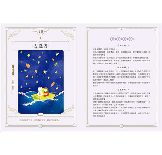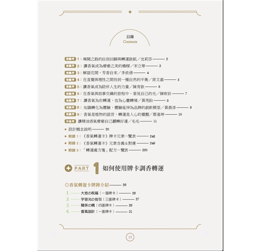 相信這本書與這套牌卡,將陪伴你在人生的每個轉折點,找到那股安定的力量與內在的光彩。讓香氣,成為你身心靈最美的療癒風景。