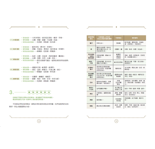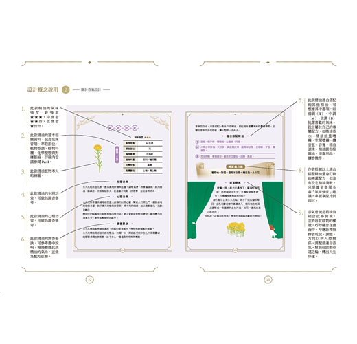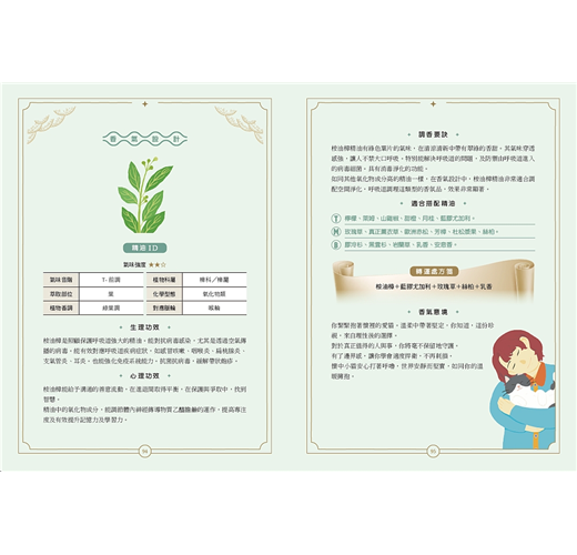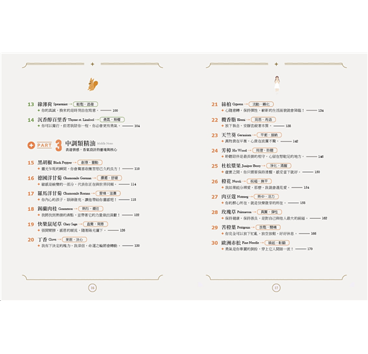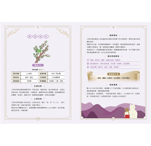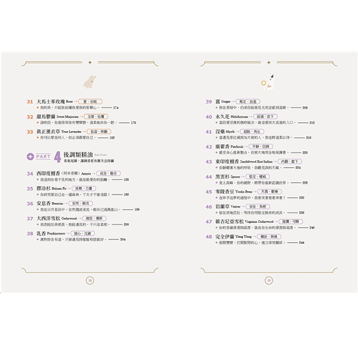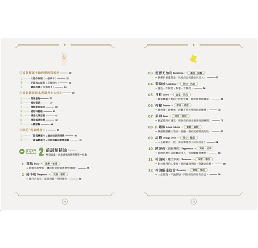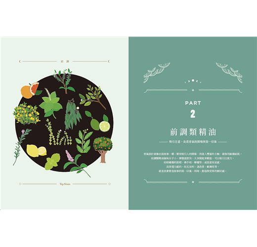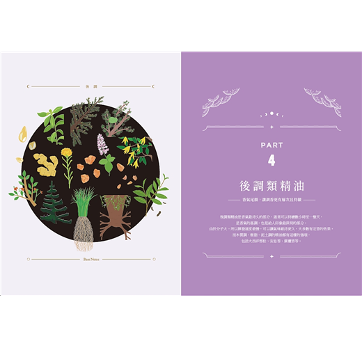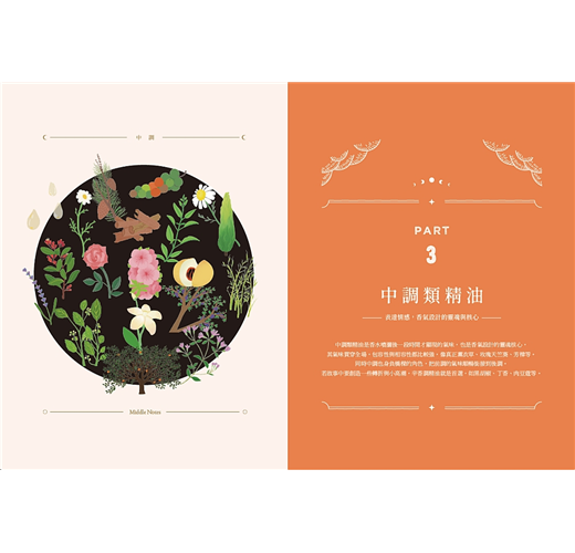 特別值得一提的是,書中巧妙地引導讀者搭配高、中、低音階的精油使用,不僅協助感官上的平衡,也讓調香變得直覺又有趣。這樣的分類方式,對於剛接觸芳療或想深入了解調香邏輯的朋友來說,是一個極為實用的切入點。
