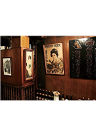 裝潢使用了味噌醬油倉庫的廢料,高聳的天花板上,有以手斧砍製的粗梁貫穿,讓人聯想到拓荒時代。吧檯對面是架高地板的座位區,擺有八張裝飾櫻花花紋的榻榻米,用釘子固定的半腰壁板井然有序,整體風格粗獷卻舒適,可謂是純樸的極致。