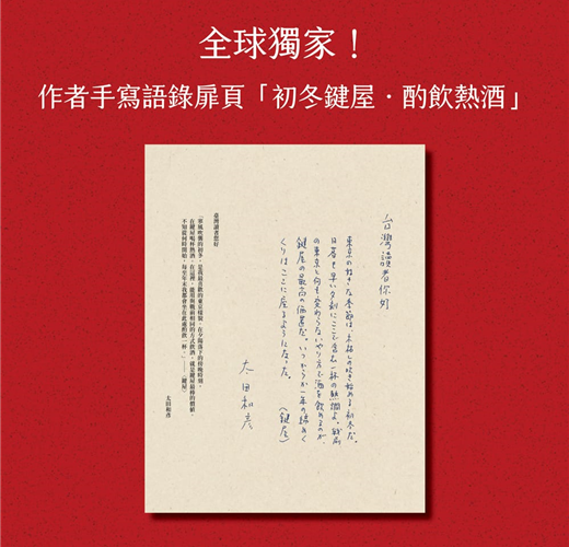 ★★榮獲日本文化廳長官表揚居酒屋探訪家太田和彥全球獨家手寫語錄扉頁★★