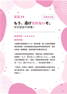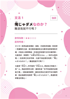 攻、受可能會說的話,我都會收錄其中。開頭以自創小品「タイガー老師及允晨」的戀愛故事為基底創作台詞,接著介紹台詞可能出現的背景、應對對象、故事脈絡、情緒等,並解說文法的眉角,最後仿造JLPT日檢考題,專出「BL」句子的JLPT題目:「BLPT」驗收大家對文法的理解,不但能訓練解題能力,還能一邊享受BL台詞的樂趣,真是「一石二鳥」!