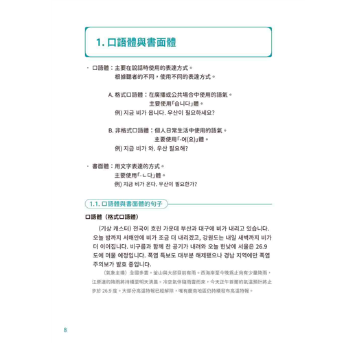 書中第二、三章,教授們將一步步教學如何撰寫學術寫作,舉凡課堂作業、報告、論文、論述題作答等皆有收錄,並附上履歷、自傳、會議紀錄、出差報告、公務郵件與邀請函等超實用韓語範本,無論是要申請韓國留學、進入韓商工作,這本都能派上用場。
