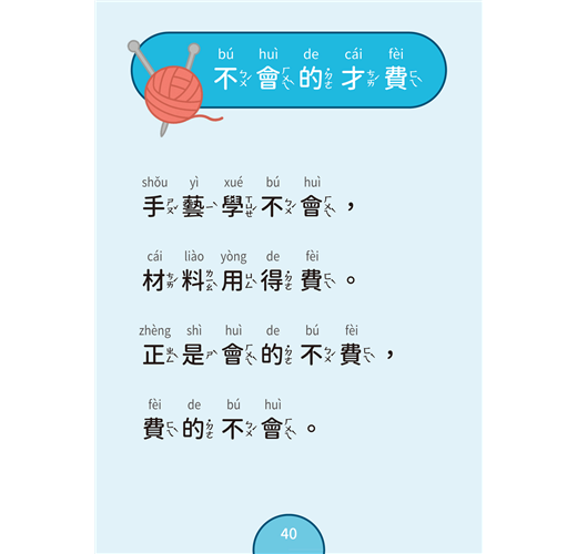 每則繞口令均搭配注音與漢語拼音,方便孩子學習,也適合外籍人士使用。