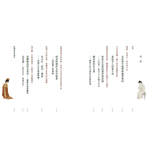 比如說,為我們塑造出許多令人難以忘懷的女性形象,並留下許多女性精彩細膩畫面的,卻是男性畫家,如書中所介紹的唐寅及陳洪綬。連慈禧太后幾張西式肖像中,最令人激賞的也仍是男性畫家華士的作品,而不是女性畫家柯姑娘的畫作。另外書中提到的明清女畫家們,她們的形象與才華,若非男性文人袁枚等的提攜推重,又焉得有今日的面貌?湯漱玉書寫的《玉臺畫史》(一八三七年刊刻),若無夫婿汪遠孫繼承其未竟之志,予以增訂修補,今天這本首部輯錄女畫家史料的專書,或許永遠無法問世?這本是一個兩性共處又相得益彰的世界,現在如此,歷史上很多時候,也未嘗不如此。