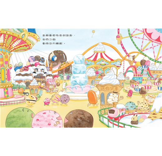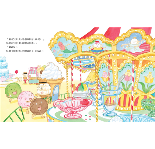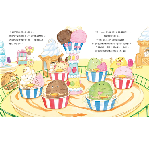 「冰淇淋們的遊樂園冒險,歡樂又療癒,是一本讓人孩子想像力滿滿的美味繪本。」