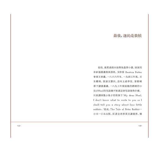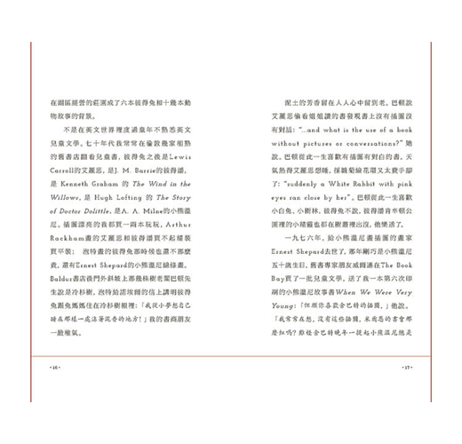從對《彼得兔》、《小熊溫尼》插畫的獨到見解,到〇〇七小說初版、賴格姆《彼得潘》及《七智柱》珍稀版本的收藏,乃至對中國明清剔紅、犀皮漆器和黃楊木雕的細膩描摹,處處展現其廣闊的學養與深沉情懷。正如濟慈所言:「美的事物是永恆的歡愉」。