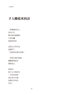 此後,陳明克寫了更多小說詩,而且內容更加趨向以歷史諷喻、政治批判、時事反映、諷刺侵略、文學寂寞等等社會寫實的主題與風格,這類小說詩主要集中在本書的後半部(尤其第四輯),構成本書篇幅最多、份量最重的主要部分。筆者原本打算試舉其中一首來簡析並稍為比較一下作者呈現事件之手法的沿襲與轉變,無奈篇幅字數已超出預定甚多,幸好,收錄在後二輯的這類具敘事詩雛型的小說詩的語言都比前二輯的小詩淺白,句子也較散文化,讀者在閱讀時稍加留意,應該不難理解作者的題旨,本文就不贅述了。