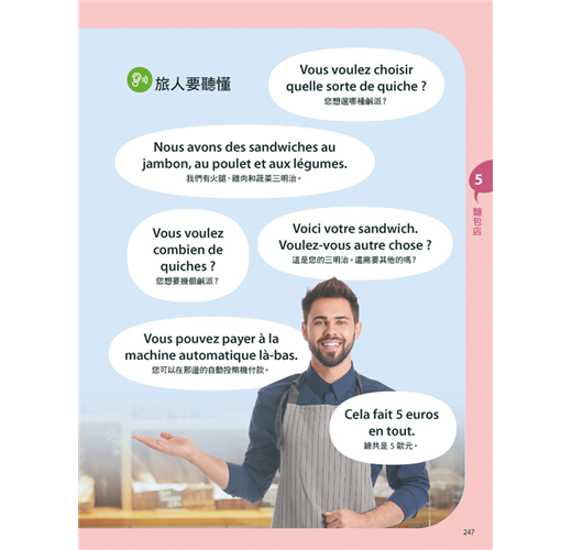 本書是為每一位踏上法國旅程的讀者量身打造的,幫助你以法語開啟更多探索的可能。不論你是剛開始學習法語的新手,或僅掌握基本詞彙與句型,它都能成為你旅途中最可靠的語言夥伴。從機場到餐廳,從藥妝店到博物館,本書將引導你用簡單自然的法語進行實用對話,輕鬆融入法國日常,體驗最地道的當地生活。