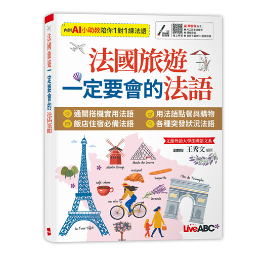 書中隨附由外籍教師親自錄製的MP3,讓你一邊學習一邊聆聽標準發音,也可搭配 LiveABC 點讀筆使用,強化聽說能力,提升學習效率。不僅如此,你還能透過「AI 會話小助教」進行口說練習,只需掃描書末 QR Code 或輸入網址,即可立即開啟實戰練習,累積更多開口說法語的自信與經驗!