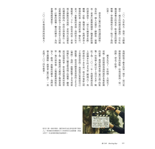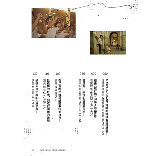 本書訪談創作團隊、劇組成員和三位主要演員,暢談製作過程的幕前幕後與甘苦心情,同時收錄劇中精彩劇照,再現電影籌備、拍攝過程,不僅呈現出高中行進管樂隊的活力和熱情,也記錄了電影製作團隊的浪漫與堅持。
