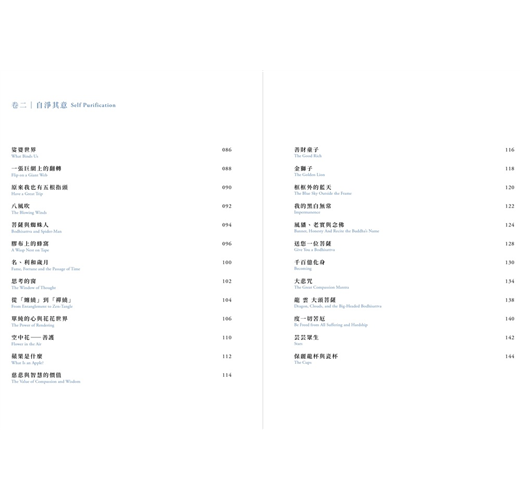 這本畫冊,不只是藝術作品的結集,也是一場慈悲與覺悟的邀請。它讓我想到《楞嚴經.大勢至菩薩圓通章》裡的一段話:「一者上合十方諸佛,本妙覺心,與佛如來,同一慈力。二者下合十方一切六道眾生,與諸眾生,同一悲仰。」在這個緣起不滅的世界裡,願我們每一個人,都能保有慈悲與善良的心,與佛同行,與眾生同在。