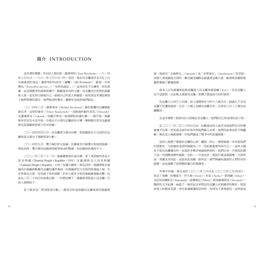 即使是現在,在烏克蘭要遇上積極的時刻也並不難,但是我遇見的每一個人,都有令人心酸的故事,幾乎毫無例外。這並不是一本悲慘的書。在他們與我分享的脆弱時刻中,我找到了如此親近、驕傲、反抗、團結、認同與力量。他們的故事殘酷而悲傷,但他們並不絕望。他們的過去與未來都有極大的希望,而這一點也在他們身上閃閃發光。