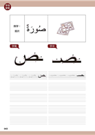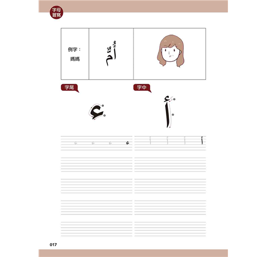 2. 精心繪製了筆順、格線,清楚交代每個字母的書寫順序和比例大小,以降低阿拉伯文字母的學習門檻,並減輕初學者對陌生字母的恐懼和抗拒心理,進而提升初學者的學習信心和學習成效。