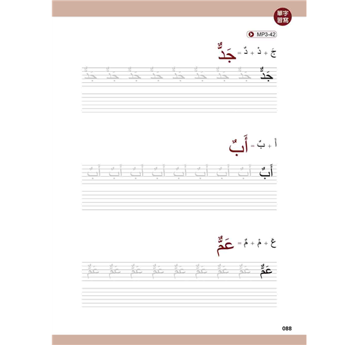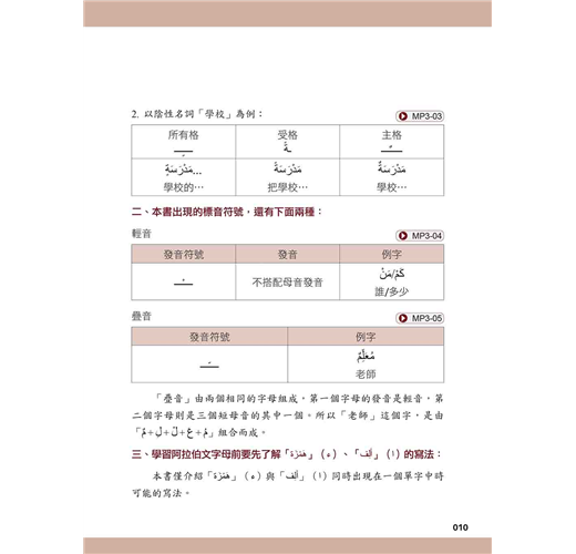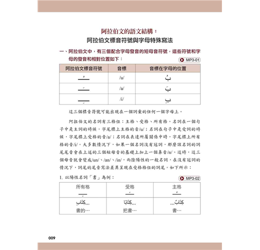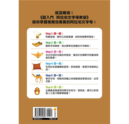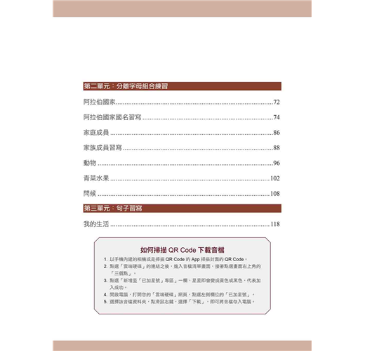 3. 若初學者還能搭配隨書附上的音檔一起學習,一定能學到字正腔圓的發音,讓聽、說、讀、寫齊頭並進,為往後繼續深入學習阿拉伯文奠定紮實的基礎!