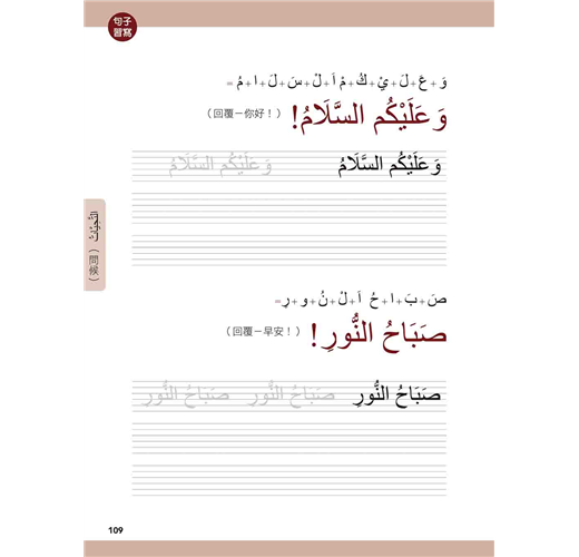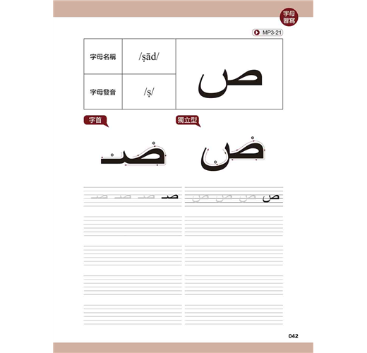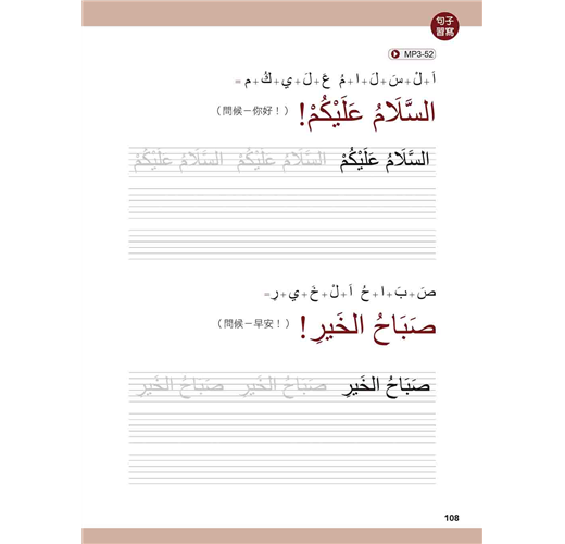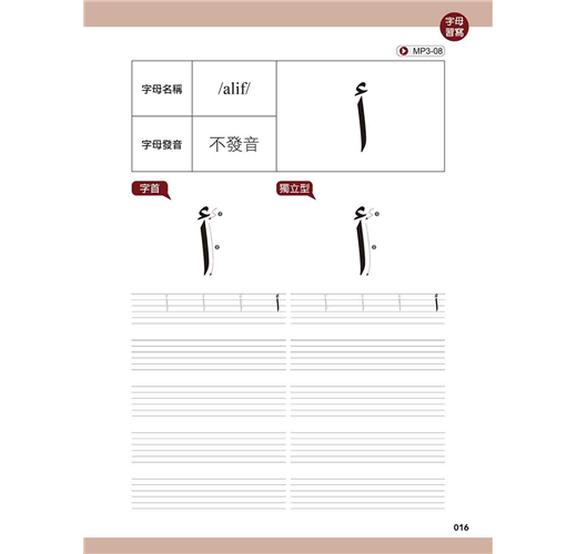 搭配音檔,邊聆聽邊練習發音,幫助你抓住阿拉伯語發音技巧;習寫時,老師念一次就跟著寫一次,記得更確實!