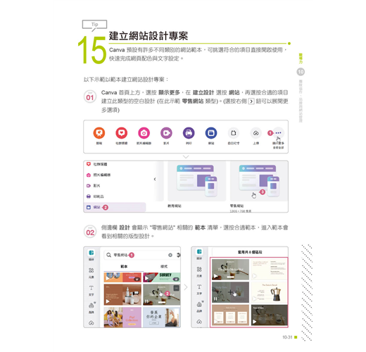 整合團隊協作的設計共享到品牌形象的精煉、多單元式網站的創建管理,再到運用AI技術探索設計的新領域,並解決Canva使用上的各種疑問,強化你在職場上的表現。