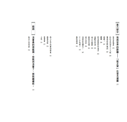 這不是一本要你正向思考的書,而是一本能陪你走過低谷的書;不是一本叫你堅強的書,而是一本允許你軟弱、掉眼淚、甚至大聲罵命運的書;這不是一本快樂人生指南,而是一本「活著真的好麻煩,但還是想活」的書。