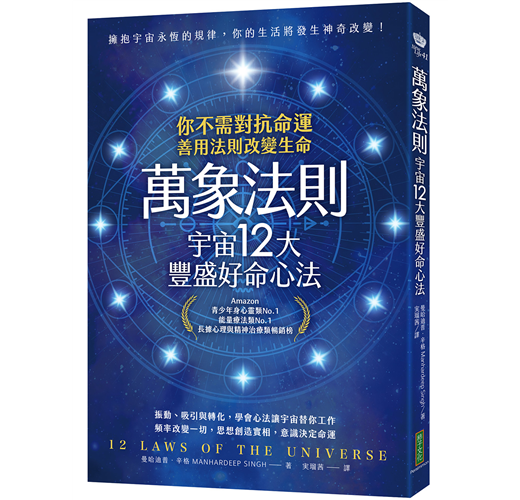 本書作者曼哈迪普.辛格要與你分享的是完整的12項宇宙法則,不只要帶領你走向成功、還要修補你,你身處的世界,你愛的人與愛你的人們,以及你的人生。