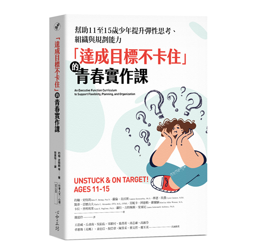我非常榮幸能為《「達成目標不卡住」的青春實作課:幫助11至15歲少年提升彈性思考、組織與規劃能力》中文版撰寫前言。謹代表本書英文原著團隊:約翰.史特朗、林恩.坎農、凱蒂.亞歷山大、莫妮卡.阿德勒.維爾納、卡拉.普利埃塞以及蘿拉.古特穆斯.安東尼,我們衷心感謝簡意玲醫師將本書翻譯為中文,使本教材能夠與華語的教育工作者、治療師及其他有志協助神經多樣性青少年提升執行功能的專業人士分享。我們非常自豪能看見這套具有實證基礎的教材能推廣到全球各地。我們深信,培養彈性思考、因應沮喪與失望、處理挫折感、與他人達成妥協、確立全局目標並擬定計畫達成目標的技巧,正如這些方法曾在美國、義大利、墨西哥及其他國家幫助過無數青少年一樣,也將能幫助台灣與華人世界的青少年。