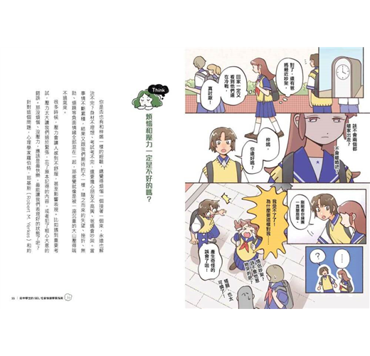 「青春期是情緒起伏劇烈、內外衝突頻繁的階段,卻很少有人真正教過孩子該怎麼面對。這套書以青少年常遇到的情境出發,結合漫畫、工具、練習與專家的引導,帶領孩子思考→解析→檢視→行動,一步步認識情緒、理解自己、練習對話與表達,從而提升自我調節,並懂得與他人好好相處。也推薦老師家長一起共讀,學會陪伴孩子長出面對世界所需要的心理韌性。」──蔡佳璇 臨床心理師、「哇賽心理學」執行長