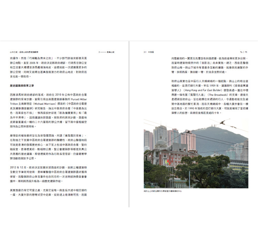 「導讀全港多座山城的特色、每幢地標背後的故事,更闡明了各個空間的規劃設計概念、考量、效果與利弊。」