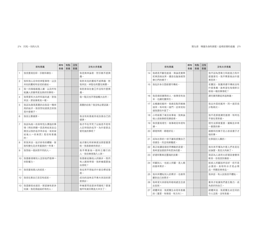 ‧不自我批判。當你意識到自己或許一直沒有好好把握自己的生命時,不免會感到難受與失望。但請不要批判自己。你已經開始閱讀這本書了。這就表示你已經有了進步。