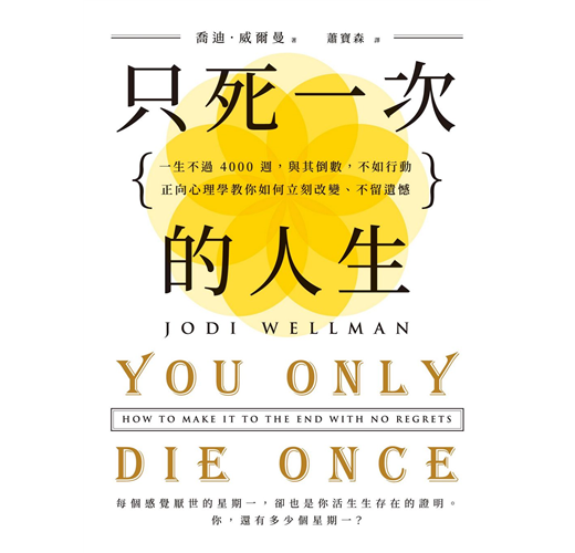 《只死一次的人生》邀請讀者踏上一場深刻的自我探索之旅,鼓勵我們重新評估生命中的優先順序,並充分利用時間。作者以既機智又風趣的手法說服我們接納死亡,並藉此激勵自己要過著更精彩豐富且更有意義的人生。——奇普.康利(Chip Conley)/紐約時報暢銷書作者暨「現代長者學院」(Modern Elder Academy)共同創辦人兼執行長