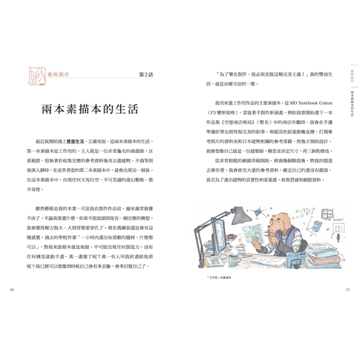 ✔️兩本素描本:「工作用」素描本讓自己專心思考如何讓畫看起來最上相、不被創作慾望的高低潮左右。「玩耍用」的私密素描本,收納「可以犯錯」的奇思妙想,就像呼吸新鮮空氣。