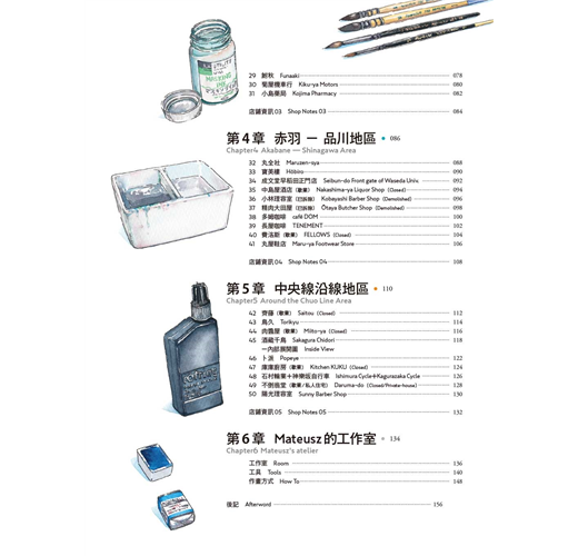 Mateusz Urbanowicz 旅居東京多年,2016年在網路上連載了10 幅「東京老鋪」插畫,受到廣大迴響,推動他展開更大型的繪製計畫,催生出這本令人愛不釋手的作品集!他用精巧的筆觸重現老鋪街道的迷人氛圍與溫度,帶領讀者穿越時空限制,展開一場超乎想像的東京建築之旅!