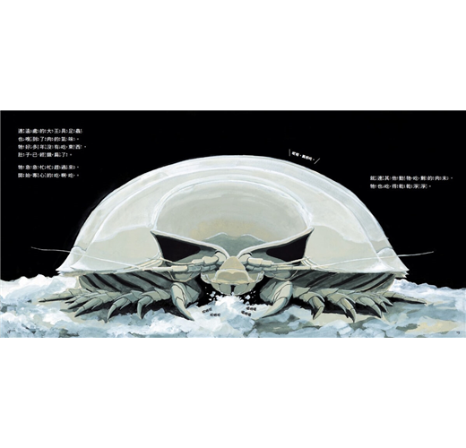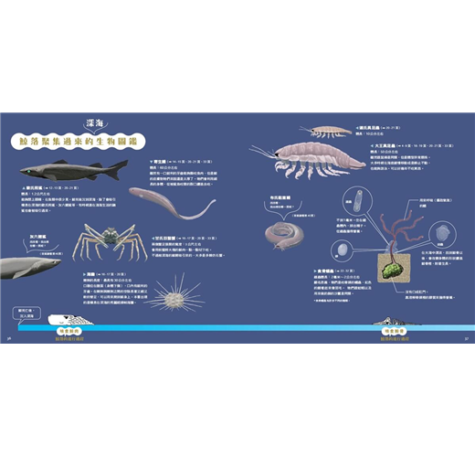 河崎俊一的插畫深具生態插畫的精確以及寫實功力,他還為這些饑腸轆轆的深海生物賦予了幽默和擬人的表情,為這本科學繪本帶來歡樂和希望。