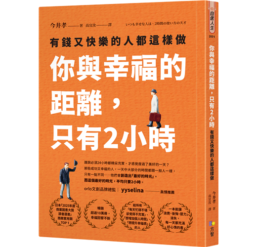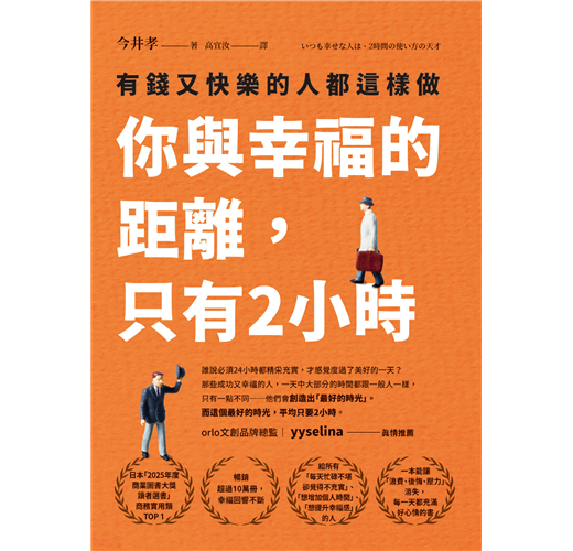 ★orlo文創品牌總監/yyselina推薦:「幸福不是等待抵達的遠方,而是日常裡被遺落的細節。作者用2小時量化幸福,引導我們有意識地與時間共處,為生活做場溫柔整理。」