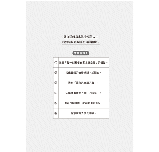 上萬名成功人士的人生經驗,精煉出「時間×幸福」的嶄新觀點