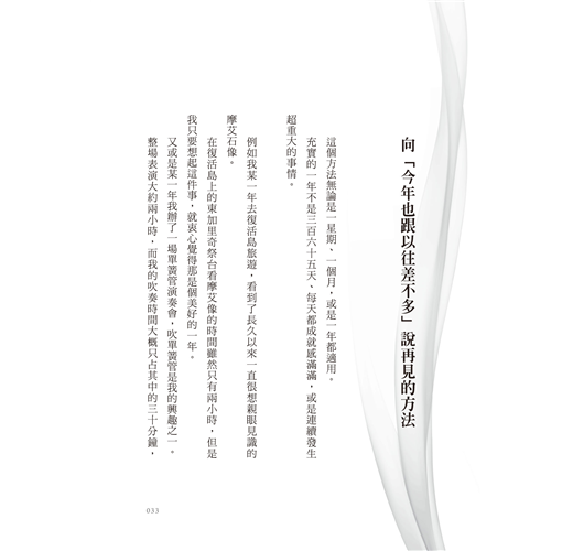 「我曾認為每天的所有時間都必須充分利用,要不停追求更高的生產力,但這樣的日子讓我覺得喘不過氣。這本書真的拯救了我。」(40多歲的男性)