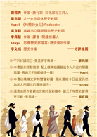 ◎謝哲青(作家、旅行家、知名節目主持人)、單兆榮(北一女中退休歷史教師)、Hazel(《時間的女兒》Podcaster)、吳宜蓉(高雄市立陽明國中歷史教師)、李貞慧(作家、譯者、閱讀推廣人)、seayu(即食歷史部落客、歷史普及作家)、李文成(歷史作家)同聲說讚!