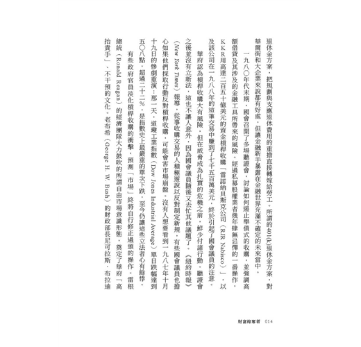 本書以清晰的思緒追查過去三十年來美國企業收購的歷史,以及私募股權在金融世界日益提升的主導地位。兩位作者調查了幾家最為人所知的私募股權公司,包括KKR、凱雷集團、阿波羅全球管理公司和黑石集團等等,揭發他們如何收購企業、讓企業背債,再吸乾他們的資產和利潤,員工面臨福利與退休金被砍或失業危機。而萊昂‧布萊克、蘇世民等億萬富豪也將輪番上陣,說著「有兩千五百個家庭要靠我們,我們得把事情做對」,實際上卻「躲在背後,絕少負責」,根據作者研究指出,私募股權收購的公司,申請破產的數量是一般公司的十倍之多。