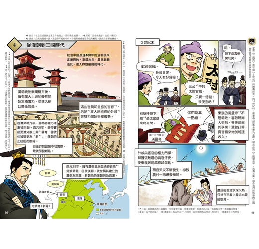 除此之外,新增的「歷史綜合分析—世界與你我」單元、穿插在漫畫間無所不在的注釋與補充,以及書末的「附錄:深入理解漫畫內容」,都提供了紮實的知識精華。無論內容的深度、廣度還是系統性,都值得推薦給對歷史有興趣的中學生閱讀,在獲取具體的基礎歷史知識後,再學習根據教育部課綱所編寫、強調統整性的教科書,歷史學習將會更全面與連貫。