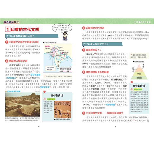 書末「時代總結」彙整每段時期的世界地圖和年表,滿足你想有系統的理解漫畫故事內容,建立完整的史地觀;同時欣賞文獻史蹟照片,讓抽象中的歷史具象化。