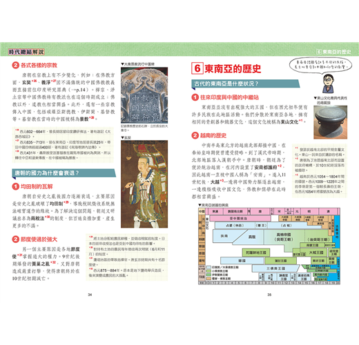 「世界史聚光燈」單元補充許多生活應用的歷史演變,配合剖面圖、表格、照片,幫助你訓練不同形式的閱讀力。
