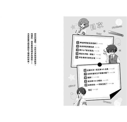 原本我以為投資很無聊,可是小櫻和志貴的故事真的超好看!有假王牌、臥底行動,還有讓人想一直翻下去的緊張情節。我最喜歡涼音假扮成志貴那段,好像電影喔!看完之後我才知道,有些人說的「穩賺不賠」其實很可能是騙人的。我以後也要像小櫻一樣勇敢,學會自己做決定!」——品諭(小學六年級生)