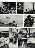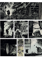 ●細節之多令人讚歎。拉瑟雷展現了布料與皮膚的紋理、皺褶、破損、風化。塵土、髒汙與血腥幾乎讓人嗅到腐爛氣味,甚至想從煙灰中咳出聲來⋯⋯此部改編無疑是一件藝術,值得收藏。特別推薦給喜愛末日題材的讀者。
