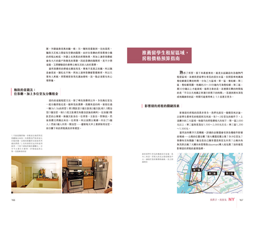 住方面,紐約各區租金預算差異、專文介紹區域及房型分析,