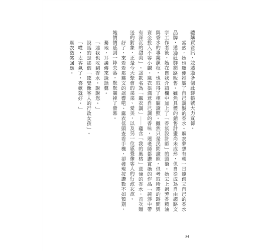 如同香水的中調,是最真實也最難以掩飾的氣味。她們正走在人生的中段——理想與現實的落差、婚姻與工作的掙扎。如果你也在迷惘,這本書會成為你的共鳴之書。